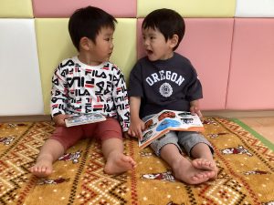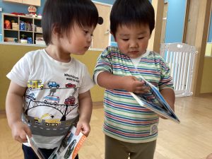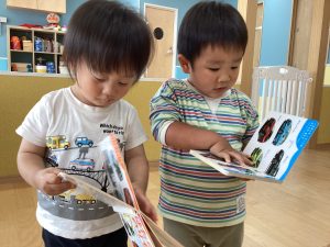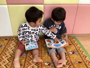 お気に入りの絵本に夢中になったり、好きな絵本をお友だちと一緒に見たりと、