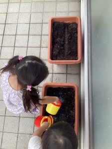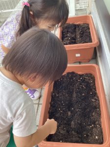 小さなタネを手に乗せて大事に大事に土の中へと埋めることができました👍