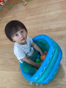 さて、そんな中お部屋の中ではボールプールで遊んでみましたよ☺️