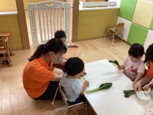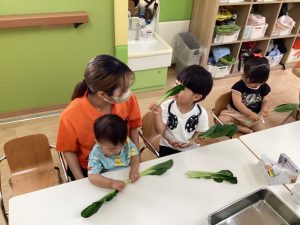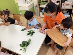 週の初めの月曜日には食育で小松菜に触れてみました🥬