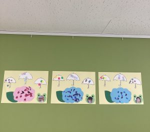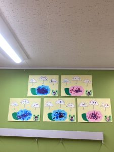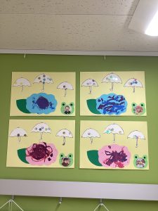 そんな傘を含めた製作を先日行い、保育室も子供たちの製作で可愛い風景になりました♪