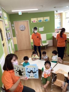 さて、今日はりんご組さんの7月の月刊絵本の「ペンくんのダンスすいぞくかん」という本を紹介したいと思います🐧