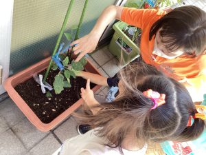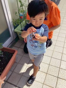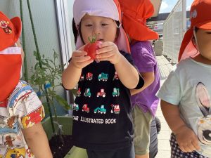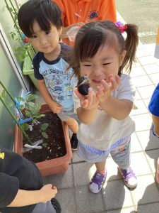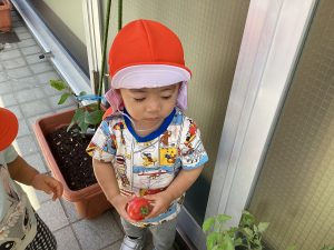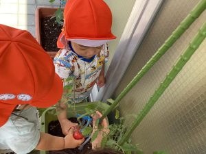 今週は、保育園で育てていたナスとトマトをみんなで収穫しました🌱