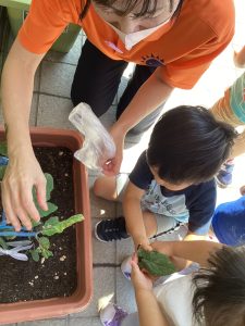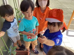 大きくなった野菜を見て大興奮の子どもたち✨
