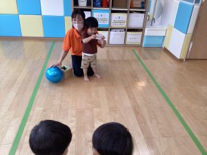 みんな上手にボールを転がして当てることができました👏