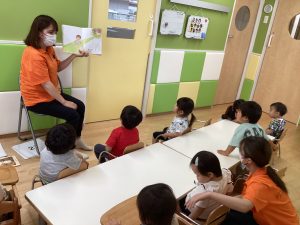 読み合いの時間だけでなく、自由遊びの時間などにもたくさんの絵本に触れています📚