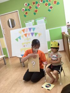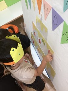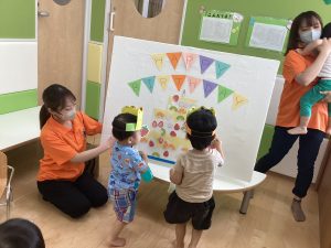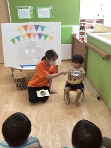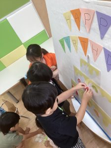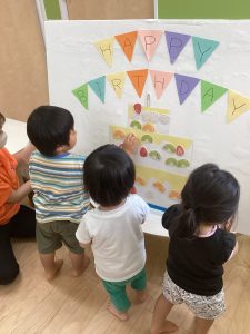 お友だちも前に来て一緒にケーキに飾り付けです🍰