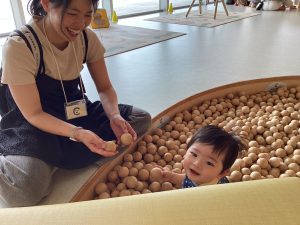 木のボールプールに輪投げなどとにかく遊ぶもの盛りだくさんなコパルに大興奮だった子どもたち♬