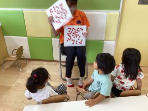 だんだん数字が大きくなり難しさもレベルアップしていますが「数」に慣れ始め、先生の後に続いて積極的に数字を声に出して言うお友だちも増えてきました👏