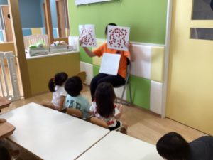 サンライズキッズ保育園では、朝の会と帰りの会の1日2回ドッツカードとフラッシュカードに取り組んでいます!