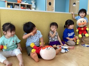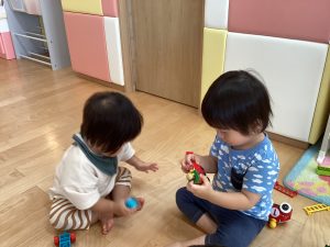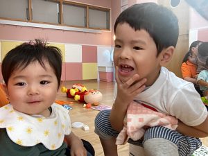 もも組さんのお友だちは、お兄さんお姉さんの遊びにいつも興味津々✨!