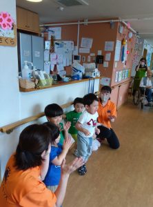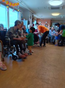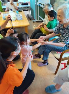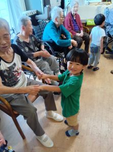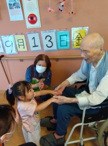 おじいちゃんおばあちゃんの手を握ってマッサージをしたり