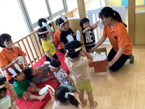 お団子運びゲームではうさぎに変身!