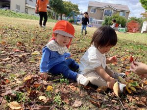 お散歩や公園でのお外での活動を楽しみながら秋を感じている子どもたちです🍁