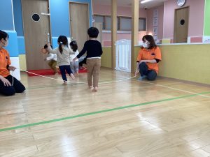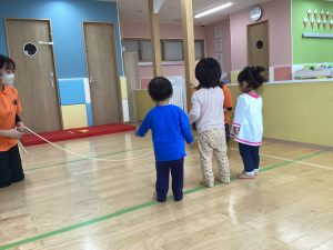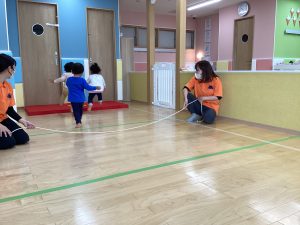 りんご組さんといちご組さんはコースの中にロープがあるんです!
