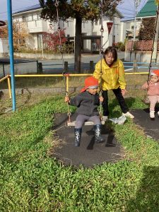 「一緒に行こう!」「いいよ!」と仲良くブランコで遊んでいる姿も見られました☺️