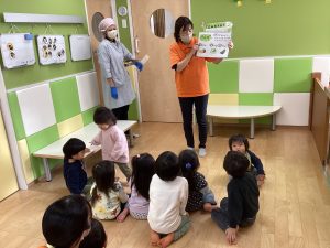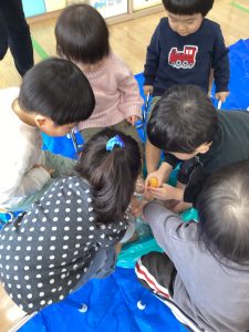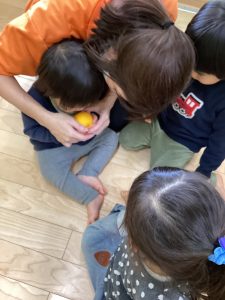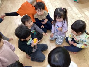 冬至の日は、風邪をひかないようにかぼちゃを食べたり、ゆず湯に入ったりする日なんだよ!とお話に興味を持ってくれた子どもたちでした☺️