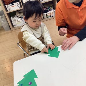 緊張しながらもツリーにつける飾りの画用紙を切ってもらい、とてもいい経験をすることができました✨🎄