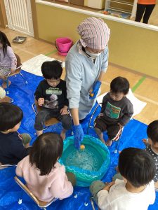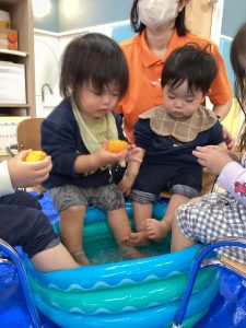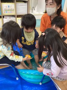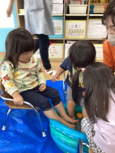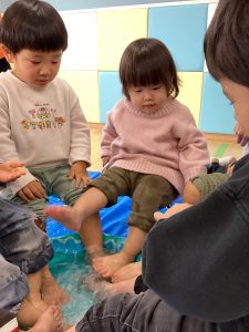 お友だちや先生と一緒に入る足湯に体も心もみんなポカポカ♨️💛