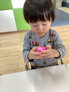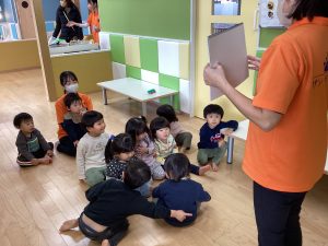 使う前に危ないものなので気をつけてねと先生が伝えるとお話をしっかり聞いていた、りんごぐみさん🍎 さすがですね!