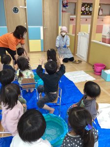 去年は手湯を体験したりんごぐみさんといちごぐみさん🍎🍓