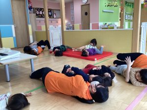 起き上がって、次は「たきび」の歌に合わせて手を叩く遊びをしてみました👏
