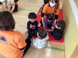 お友だちや先生とペアになり「トンパッ」のリズムに合わせて手を合わせいきます🖐️