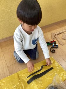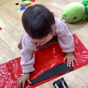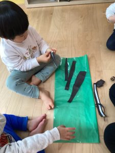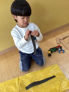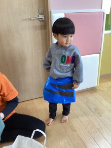 ももぐみのお友だちもテープ貼りに挑戦してみましたよ🍑