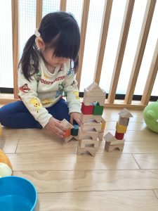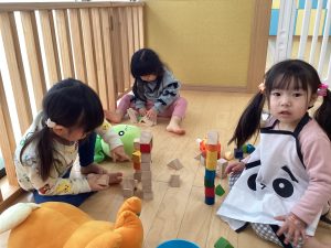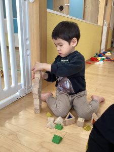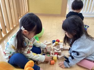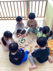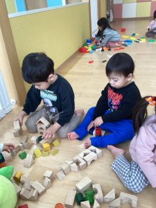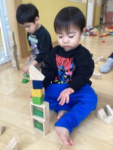 みんなで積み木を囲んでいる姿が微笑ましいですね☺️