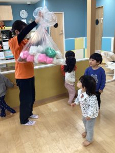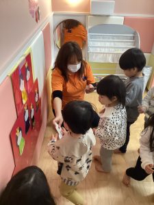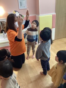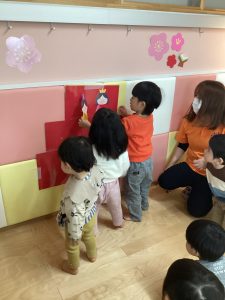 紙芝居を見て“ひなまつり”について知った後は、ひなあられゲームに挑戦しました!