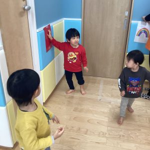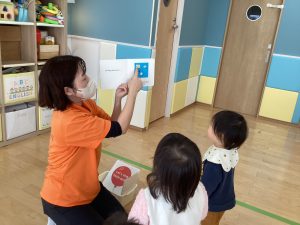 Songでは、♪Baby shark や♪Color touch song など、テーマ曲を変えながら体を動かしたり、様々な色のカードに触れて楽しみました🦈❤️💙💚