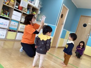 カリキュラム本題に始まる前に絵本や手遊びをしてからLet’s start !