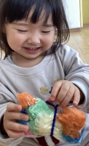 好きな色の花紙を透明な袋に入れて、世界に1つだけのオリジナルの素敵なちょうちょたちが出来上がりました✨
