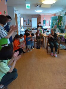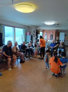 おじいちゃんおばあちゃん、職員の方も一緒に歌ってくれたり手拍子をしてくれたりと、とても温かかったです😌