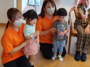 さて、先日2歳児のりんごぐみさんがだんけさんにお邪魔して交流会をしました!