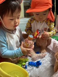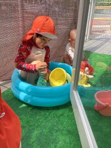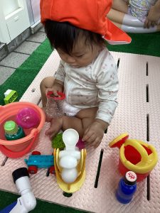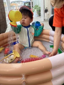 最初は少し緊張気味だったお友だちも少しずつ慣れてお水に触ってくれました