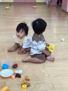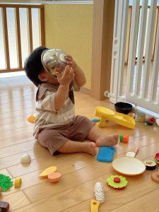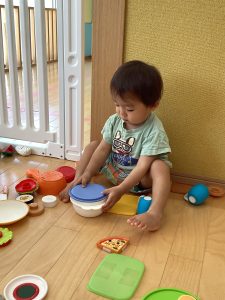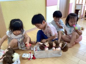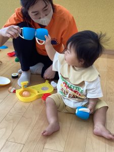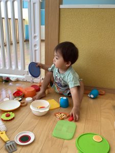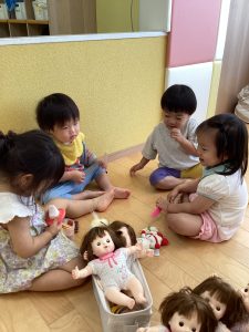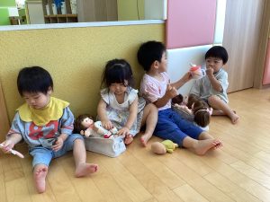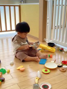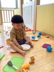 さて、今回はももぐみ・いちごぐも・りんごぐみ全クラス合同でおままごとをして遊んだ日の様子をご紹介します👀