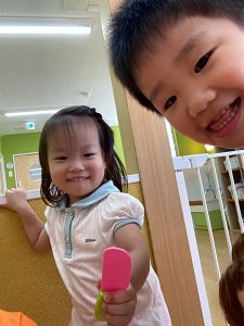 遊んでいるおもちゃを見せてくれる子もいました☺️