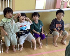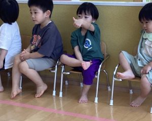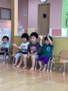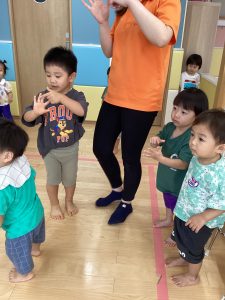 Songのコーナーでは、How many fingers?の音楽に合わせて手や足の指を数えて楽しみました🎶