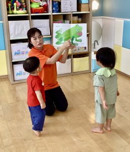 絵本のBrown Bear Brown Bearを見ながら「色」に触れ、大好きな動物に興味津々な子どもたち