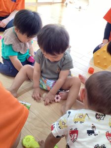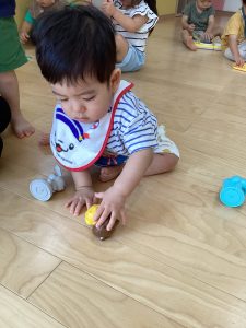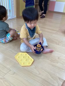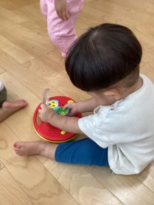 さて、また別の日にはお部屋の中では何やら新しい玩具が登場し釘付けになり遊ぶ姿がありました👀