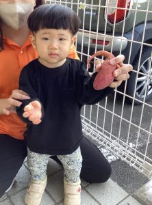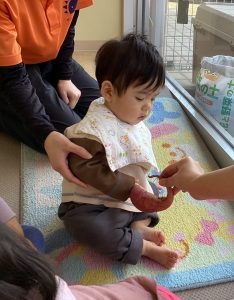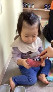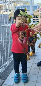 土の中から出てきたさつまいもを触ってみました!