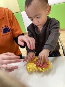 テープやシールもどんどんと扱いが上手くなり、先生の手を借りずともしっかりと自分の手で貼っていきました!