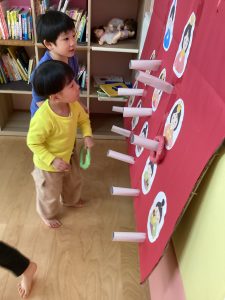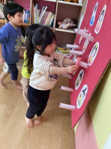 みんな好きなひな人形の場所に輪っかをかけていきます♪
