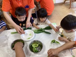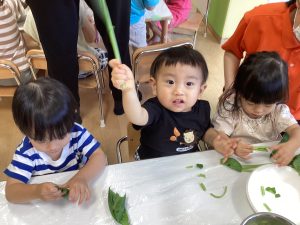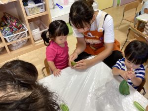 もも組さんは小松菜🥬を触りました!