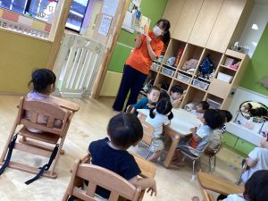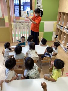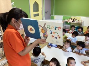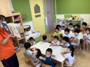 真剣に絵本を見る子どもたち👀