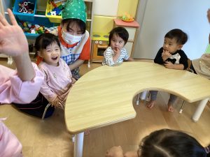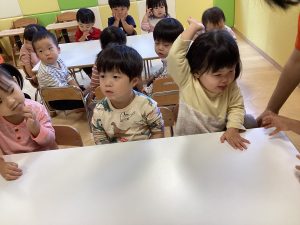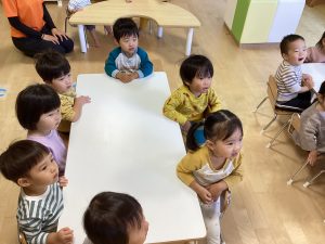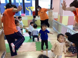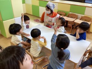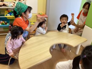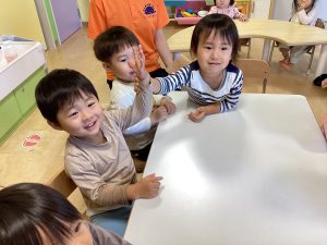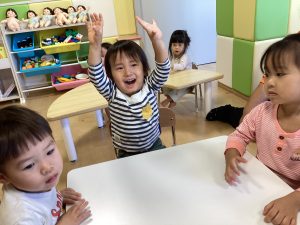 大きな声でお返事する子や手を元気一杯あげてくれる子など、
