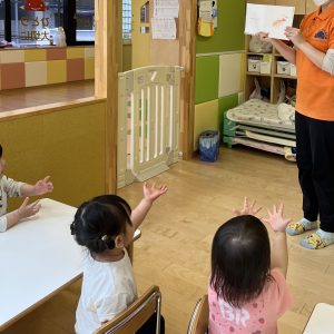 「〇〇くださーい」のところで「ちょうだい!」と子どもたちも手を伸ばしています🤭
