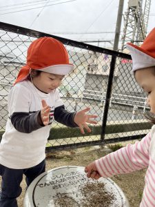 そして線路沿いにある『ちびっこ広場』ではすべり台や砂でおままごとをして遊んでいます😌