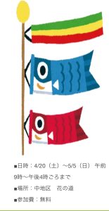 また花の道では、第14回久宝寺緑地手作りこいのぼり祭りが5/5までの期間 毎日開催中!